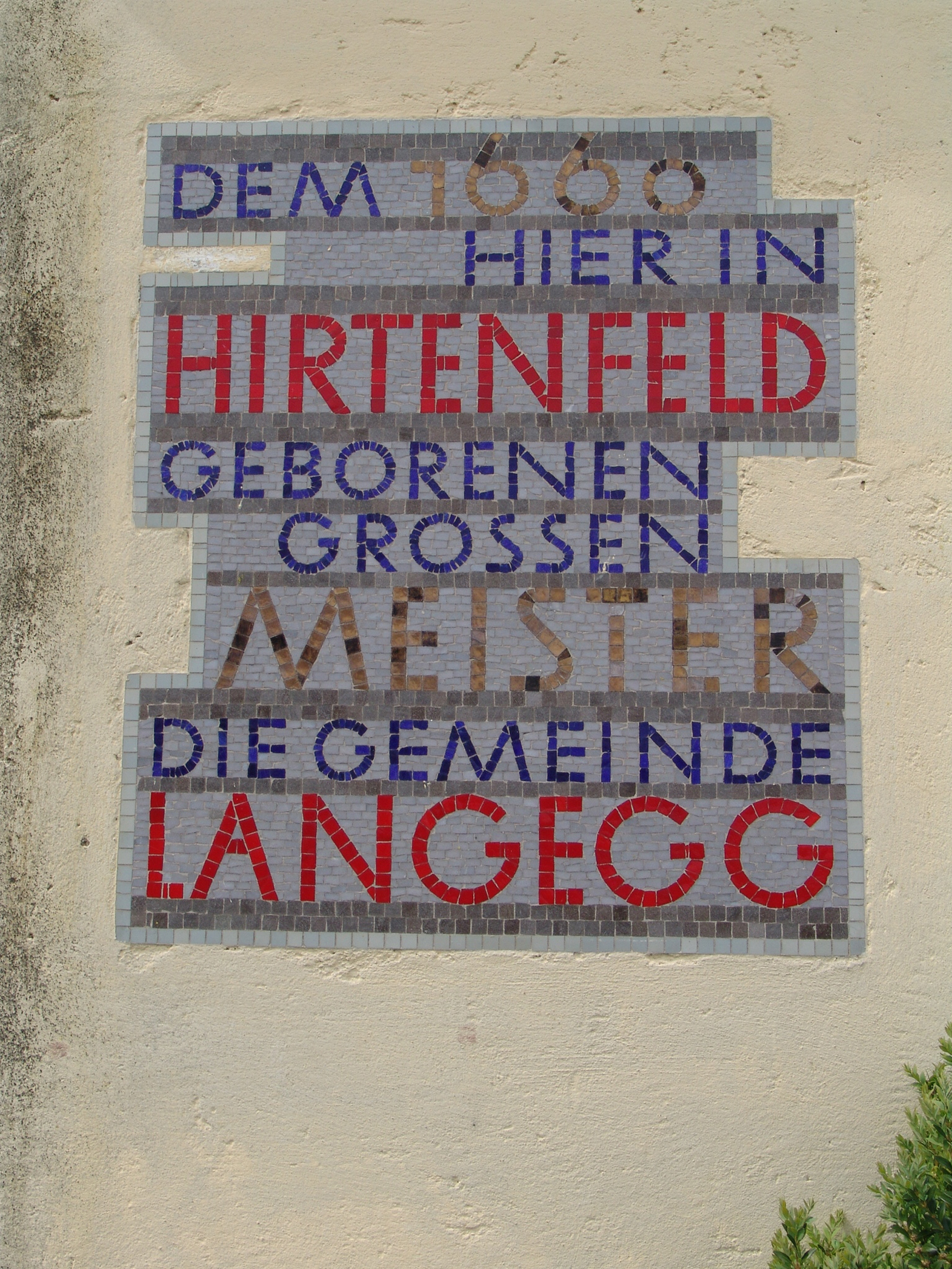 Dem 1668 hier in Hirtenfeld geborenen grossen Meister die Gemeinde Langegg